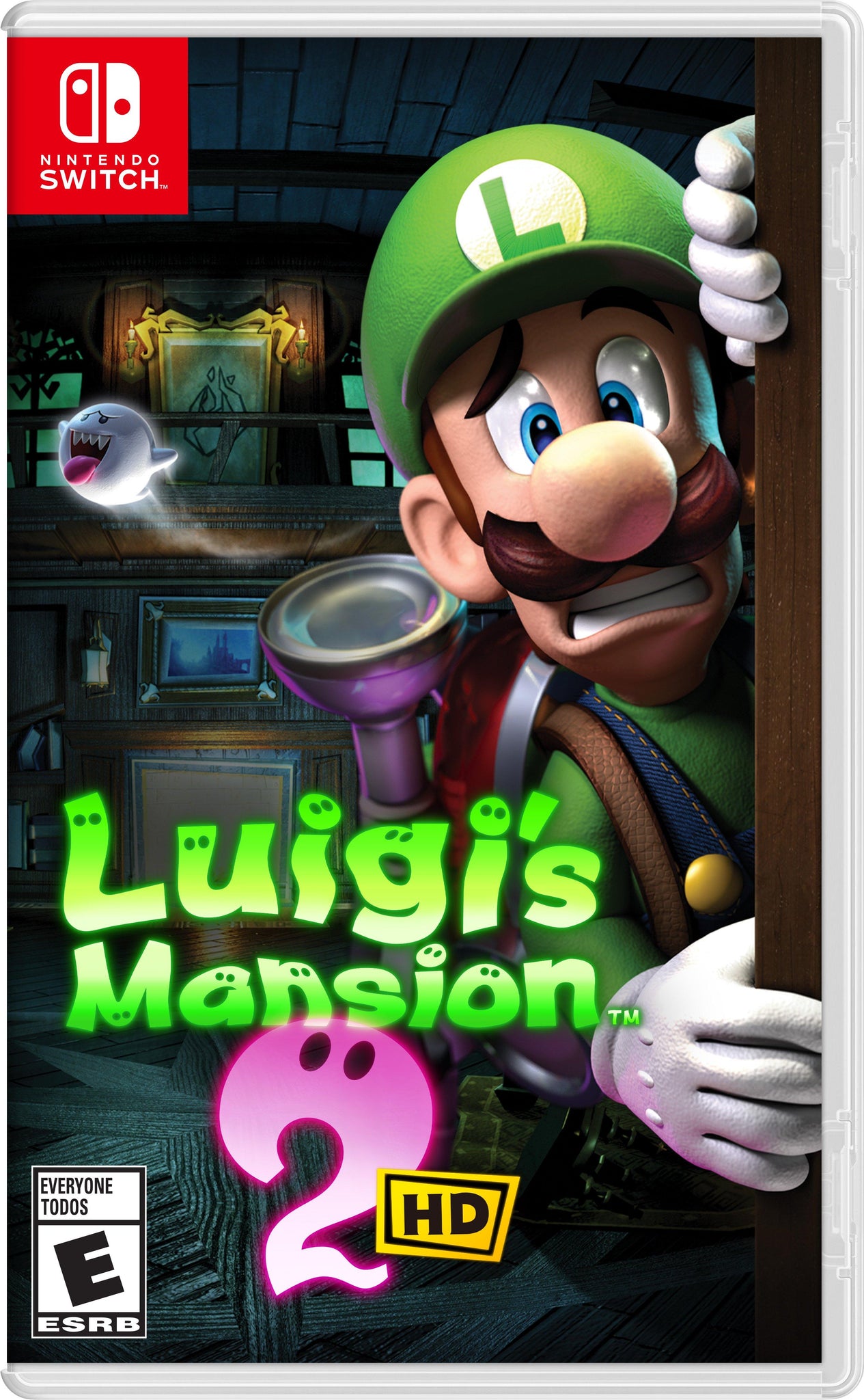 Progress through diverse missions to retrieve the missing shards of the Dark Moon scattered across several distinct haunted mansions, each with their own puzzles to solve and ghosts to capture. Go for a high rating by using your superpowered ghost-hunting tool, the Poltergust 5000, to suck up ghosts (and window curtains) and blow air to search every nook and cranny of the chilling-yet-charming mansions. This spooky fun adventure, originally released for the Nintendo 3DS™ system, is now visually enhanced in HD on the Nintendo Switch™ system.