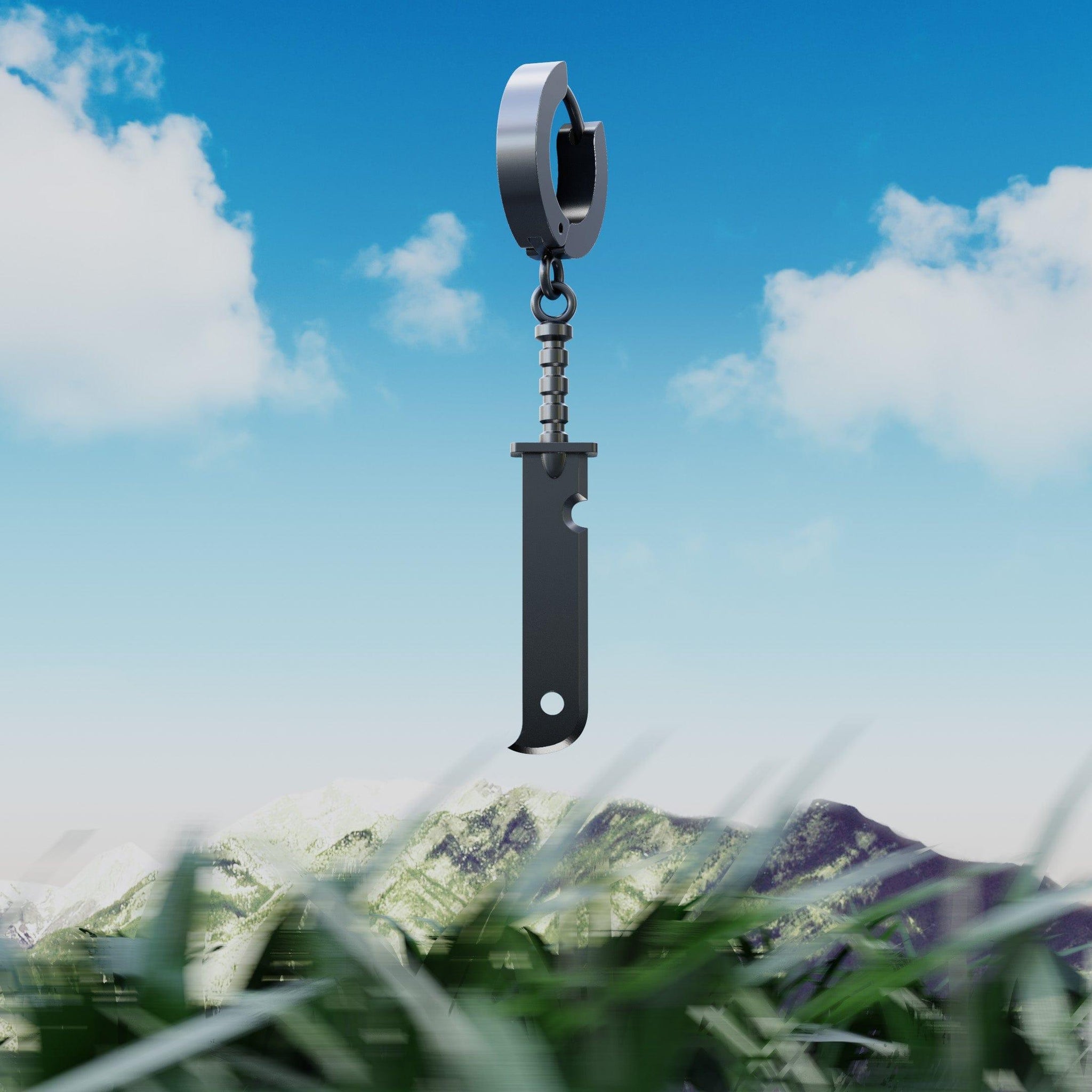 The Zabuza's Sword Earring has a hinged hoop earring (20 GA) and is made from high-grade Stainless Steel. Features a Japanese Kubikiribōchō design and stands 30mm tall & 3mm thick & 8mm wide.
