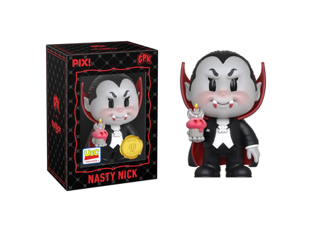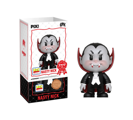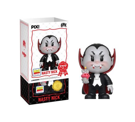 This PIX! is really off the fangs! Featuring Nasty Nick in his signature tuxedo and cape, showing off his long bloody fangs! Nasty Nick is really counting to be on your shelves! This PIX! is perfect for all fans who love card collecting!