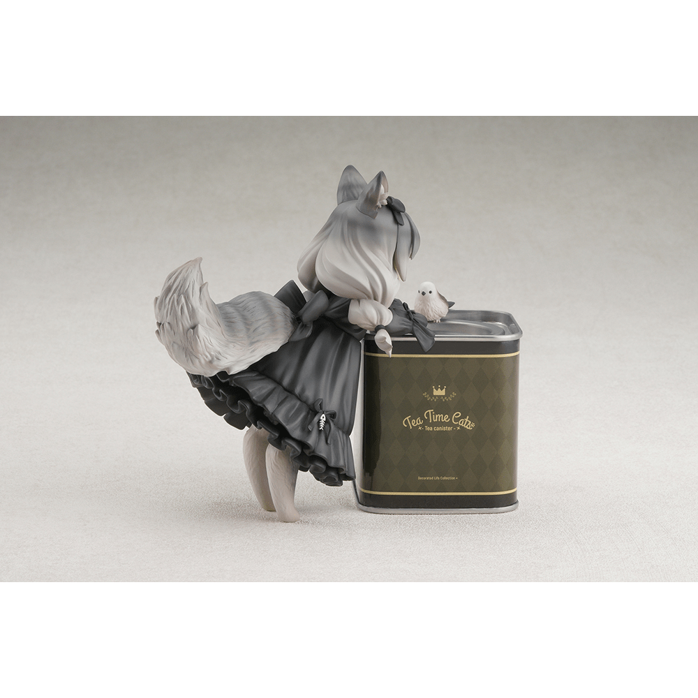 This Tea Time Cats series set features a custom usable tea can along with an adorable house cat figure that measures around 2 by 5 inches, both practical and adorable to display.