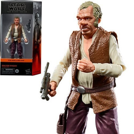 Dr. Evazan: medical deviant! A grubby, scarred smuggler from Alsakan, Cornelius Evazan was once a promising surgeon, but became notorious for conducting cruel medical experiments. Figure includes blaster.