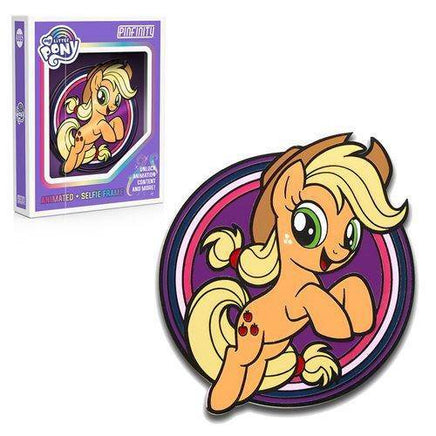 How about an animated picture frame pin for your selfies, My Little Pony fan? Unlock animation content and more with this 1 3/5-inch diameter My Little Pony Applejack Augmented Reality Enamel Pin! Unbelievable as it might seem, Applejack can come to life with animation and music! Pop out this down-to-earth Pony by moving your pin off-screen or the phone away from the pin. Tap the cutie mark to access the DLC wallpapers and selfie cam. Start scanning, and then tap the hearts to open the wallpapers. Then, tap and hold to save to your device. Awesome!