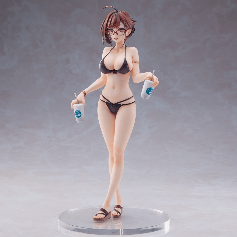 Based on an illustration by 92M, the near-sighted sister is here as a beautiful 10-inch figure from Union Creative! Wearing a stunning bikini for a day at the beach, she has been sculpted offering you a nice cool drink, and includes a clear base for display.
