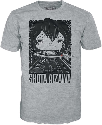 Train with Shota Aizawa from My Hero Academia with this Pocket Pop! Shota Aizawa and Tee combo! Pocket Pop! Shota Aizawa, one of the toughest teachers and Pro Heroes at U.A. High, looks ready for action, dressed in his Hero outfit.