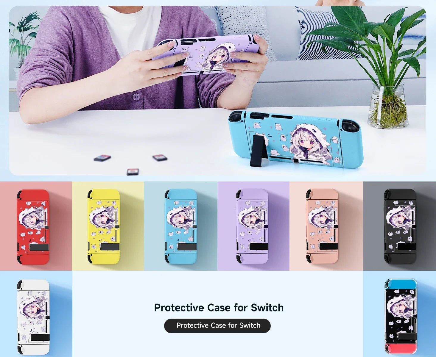 Protect your Nintendo Switch in style with our Anime Ghost Girl case! Not only will it keep your device safe, but it also adds a kawaii touch to your gaming experience. With 6 colors to choose from, you can mix and match for a personalized look.