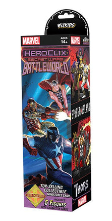 Marvel Universes combine to form the collective Battleworld planet in this brand-new HeroClix 5-figure booster set! Dominate the tabletop with powerful “Barons” of each Battleworld domain! Explore uncharted territory with exciting characters from the Marvel Universe as you have never seen them before!