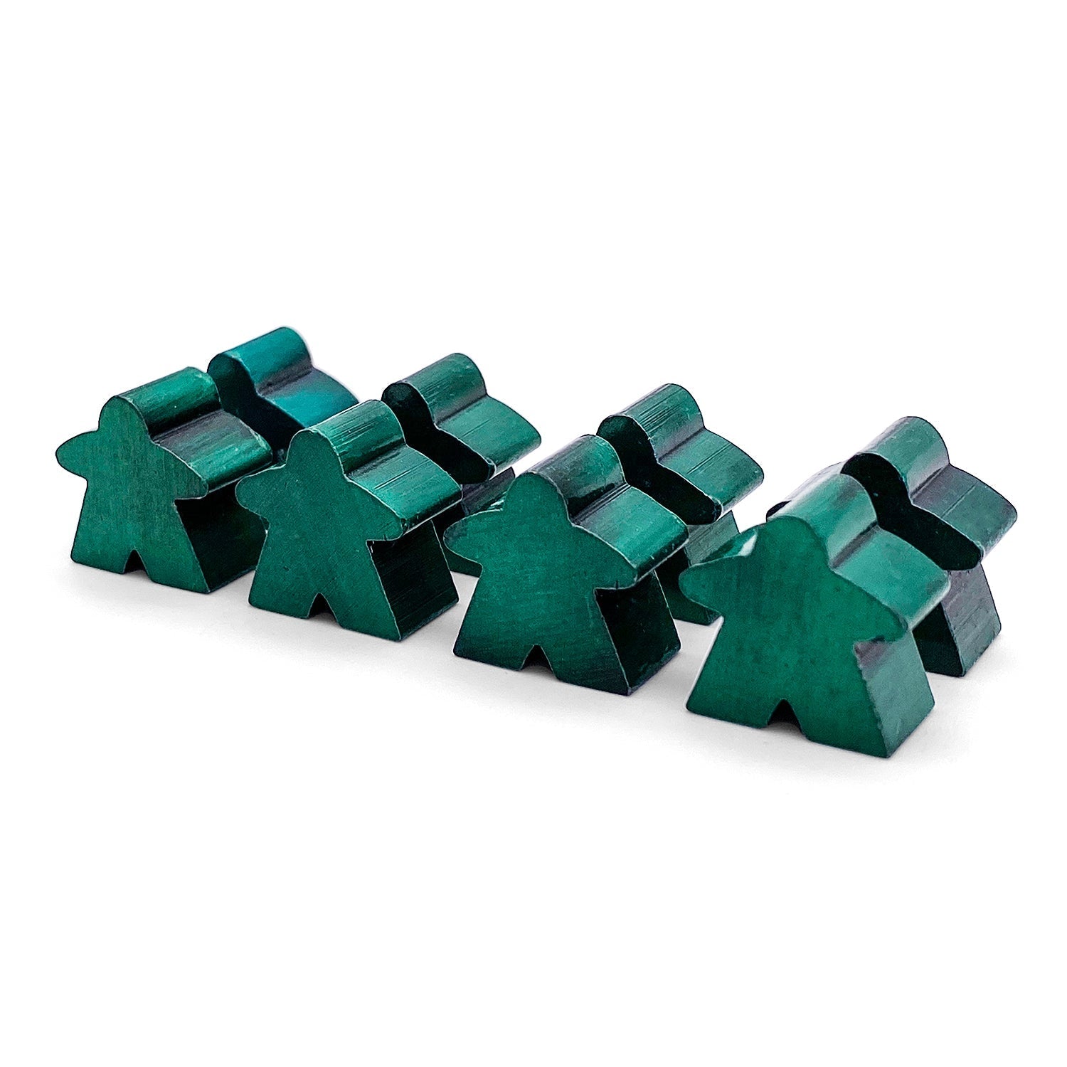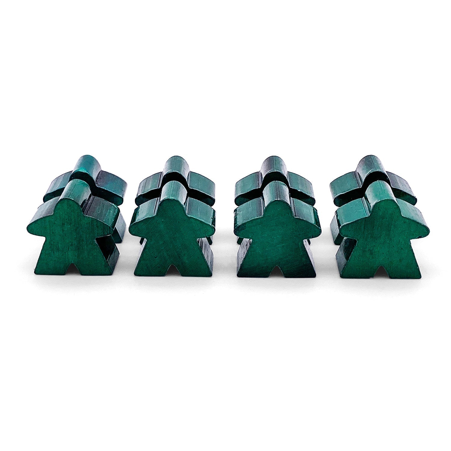 In this pack you will receive 8 Enamel Meeples in Green and Silver