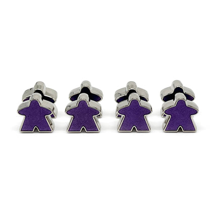 In this pack you will receive 8 Enamel Meeples in Purple and Silver