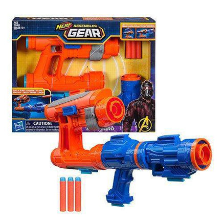 Get ready to build and blast like the out-of-this-world hero with Star-Lord Assembler Gear! Collect, combine, and customize! With Avengers Assembler Gear featuring Nerf technology, kids can assemble their ultimate blaster and imagine taking down the bad guys! Each Assembler Gear set features different blaster combinations and can be combined with other Assembler Gear sets (each set sold separately) to buildcustomizable blasters and get ready to blast into action! With over 100 combinations of blasters with multiple sets (each set sold separately), the only question is: what will you assemble? Additional Assembler Gear sets each sold separately. Subject to availability. Includes blaster, 2 connectors, 3 darts, and instructions.