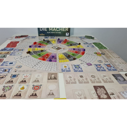 Die Macher is a varied and exciting game that advances 3 to 5 players through a tense federal state election. An expanded game is also included for players that want to dive even deeper into the elections campaigns.
