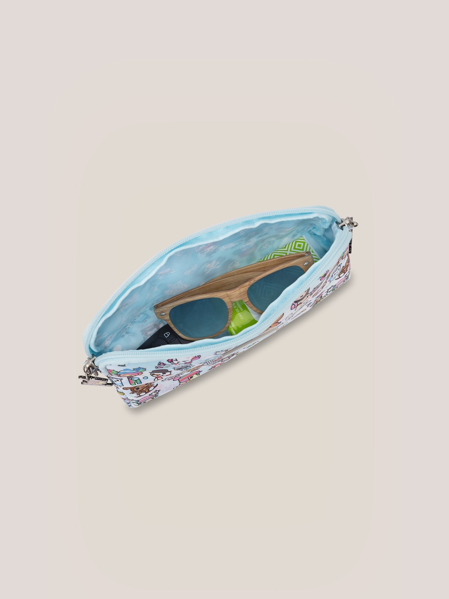 Get ready to take your organization skills to the next level. This set includes three mini bags that you can use to organize your diaper bag or as standalone bags. When you pack with Be Set, you’ll never have to dig around the bottom of your bag for small items again. The set comes with two detachable straps for use a wristlet or shoulder bag. You can also use them to hang the bags from your stroller.