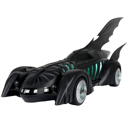From the 1995 Batman Forever movie comes the iconic Batmobile! The vehicle comes with a 7-inch scale action figure of Batman's trusty butler, Alfred Pennyworth! A display base for the fully articulated Alfred and collectible art card is also included. The Batmobile measures approximately 31-inches long and can fit a figuure in the cockpit. Plus, the Batmobile features lights and sound! The vehicle requires 3x AAA batteries, which are not included. Batman figure is sold separately. For ages 12 and up.