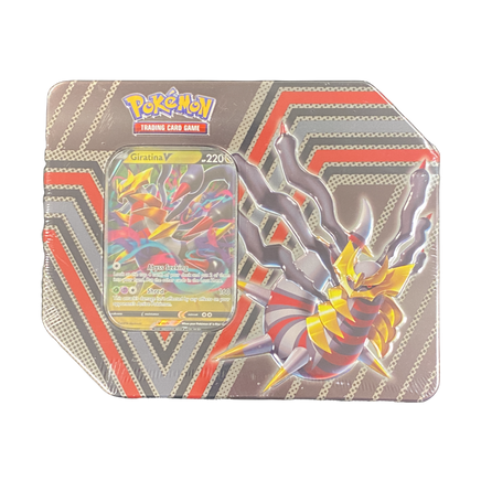 A new Pokemon TCG tin with 5 sealed booster packs.