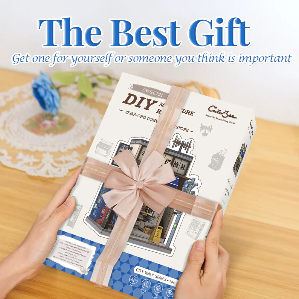 Experience the nostalgic charm of Japan with the CUTEBEE DIY Miniature House - Beika-cho Convenience Store. This premium dollhouse kit recreates an authentic Japanese konbini (convenience store) with incredible details, warm LED lighting, and miniature products that capture the essence of everyday Japanese life.